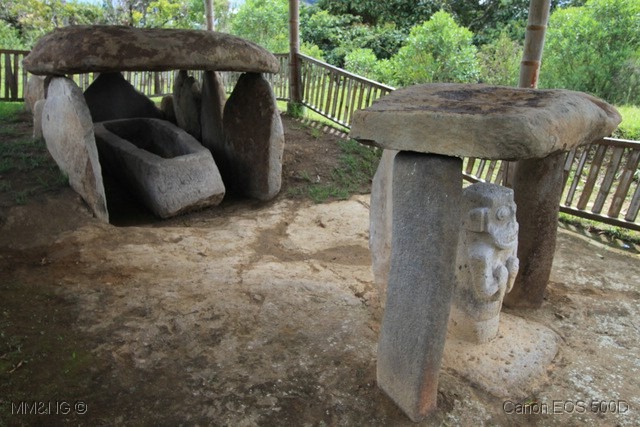 Aproveitando a altura em que estavam a ter uma lição sobre a zona descemos em direção à Mesita B, com ocupação habitacional no período formativo e onde foram construídos 3 montículos acompanhados de 63 estátuas no período clássico Regional. Uma das maiores estátuas foi denominada “la partera” por representar uma entidade de chapéu trapezoidal, sustentando um bebé de cabeça para baixo e outra figura humana também nessa posição.